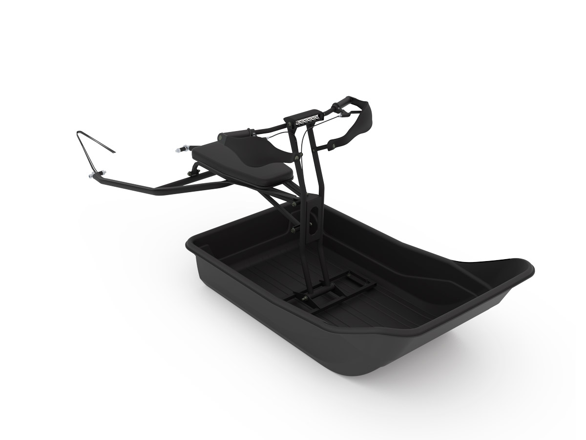 Шарнирное соединение обеспечивает перемещение саней по вертикали для комфортного подъёма, спуска и поворота для объезда препятствий.
